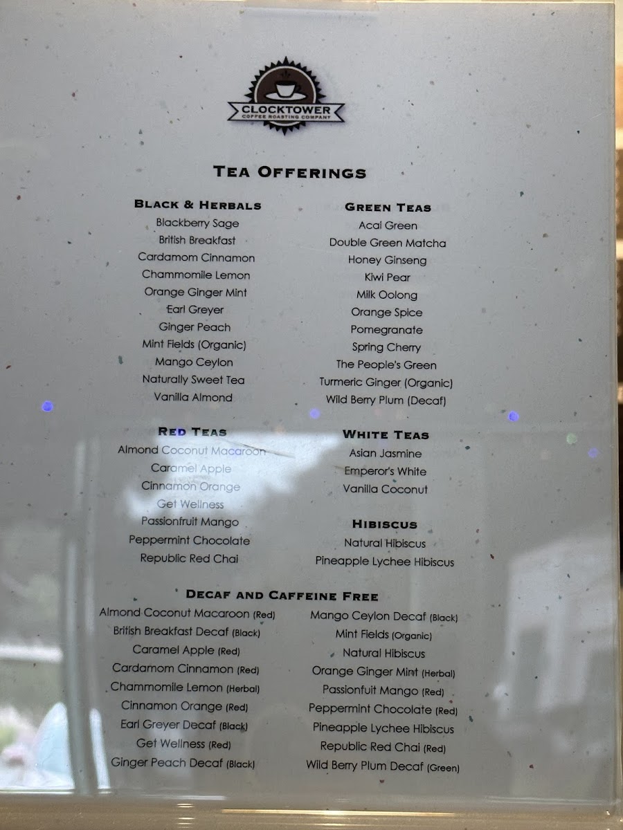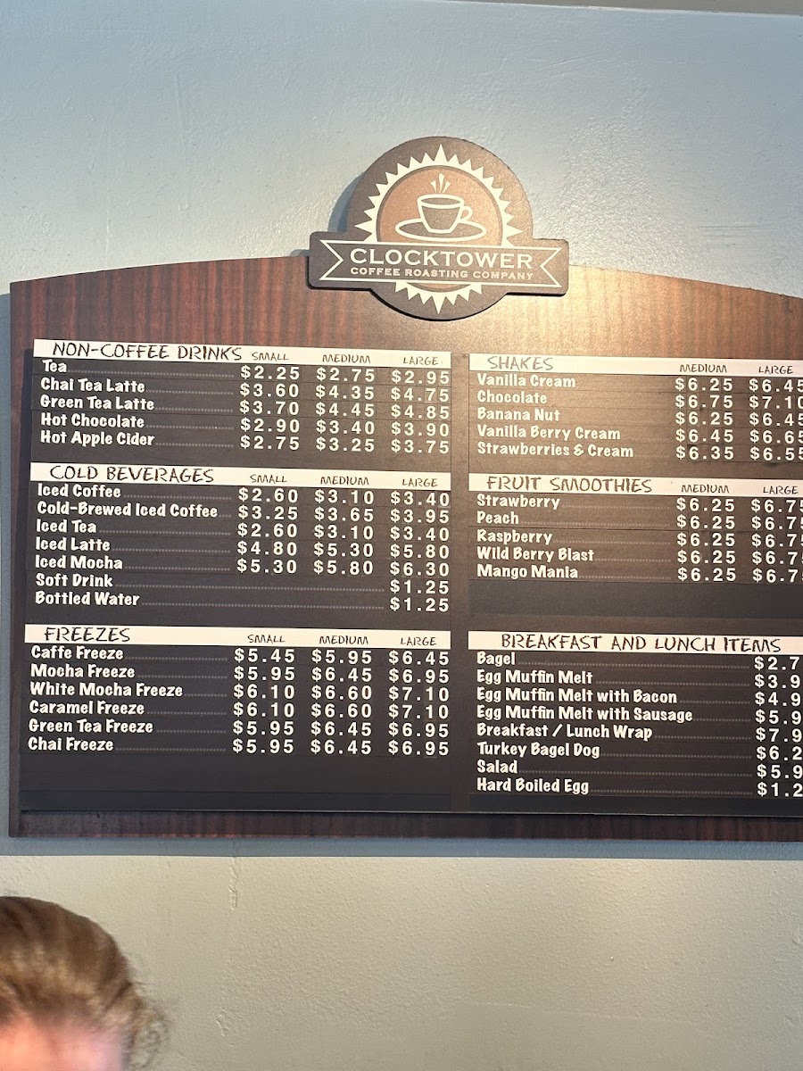 Clocktower Coffee Roasting Company Menu